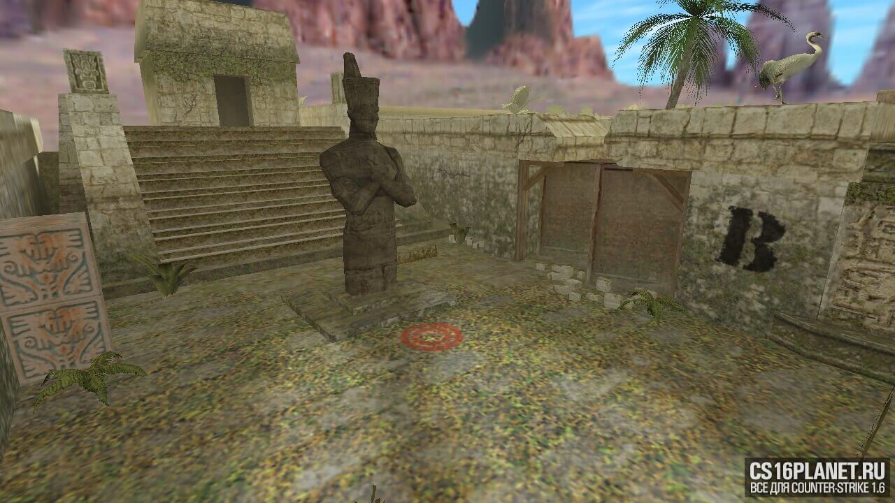 Древние руины ацтеков, зелёные непроходимые лианы и нетронутые человеческой рукой природные богатства - карта «de_templum» для CS 1.6 выполнена в стиле de_aztec и поэтому получила такое вступление. При игре на этой карте можно почувствовать, будто Вы и вправду перенеслись на какой-то необитаемый остров, на котором раньше существовало племя ацтеков. По всей территории карты разбросаны разного вида статуи, которые ещё больше убеждают Вас в этом. Хоть и сражаться придётся в основном в "коридорах", карта получилась довольно просторной и большой. Максимальное количество игроков 32.