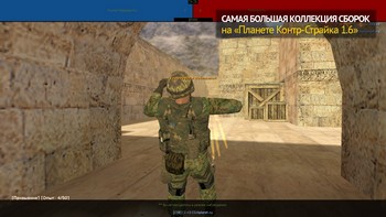 CS 1.6 Элитный спецназ России – российская сборка Counter-Strike 1.6. Главный фон встречает нас картинкой, на котором изображены два спецназовцев из отряда элита. Сборка была создана специально для фанатов спецназа РФ. В данной сборке присутствует множество различных скинов...